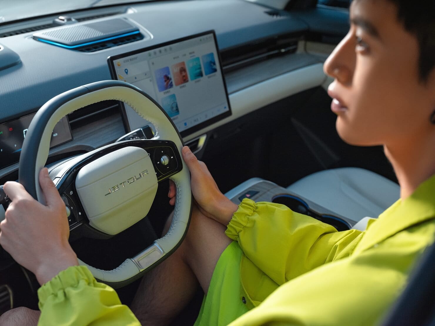 В новой палитре цветов Jetour Dashing, помимо четырех основных цветов - лунного белого, космического черного, фантомного серого и ванильно-синего, добавлены два новых оттенка - аурора-зеленый и серо-белый.